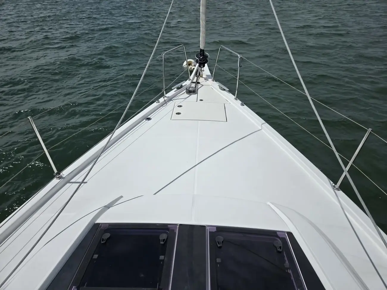 - Stainless stanchions, bow and stern rails, and double lifelines with gates to port and starboard
