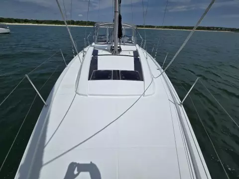 OFF-PISTE is a stunning example of the classic Oceanis 46.1 design from Beneteau. This model is ideal for extended cruising with a couple or friends and family, while remaining easy to sail short-handed. The wide open cockpit leads to expansive deck surfaces and a beautifully designed interior with light oak and upholstery finishes. She is fast and boasts a contemporary aesthetic both inside and out.