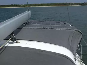 - Bimini over cockpit with solar panels built in - strip light along bimini bow