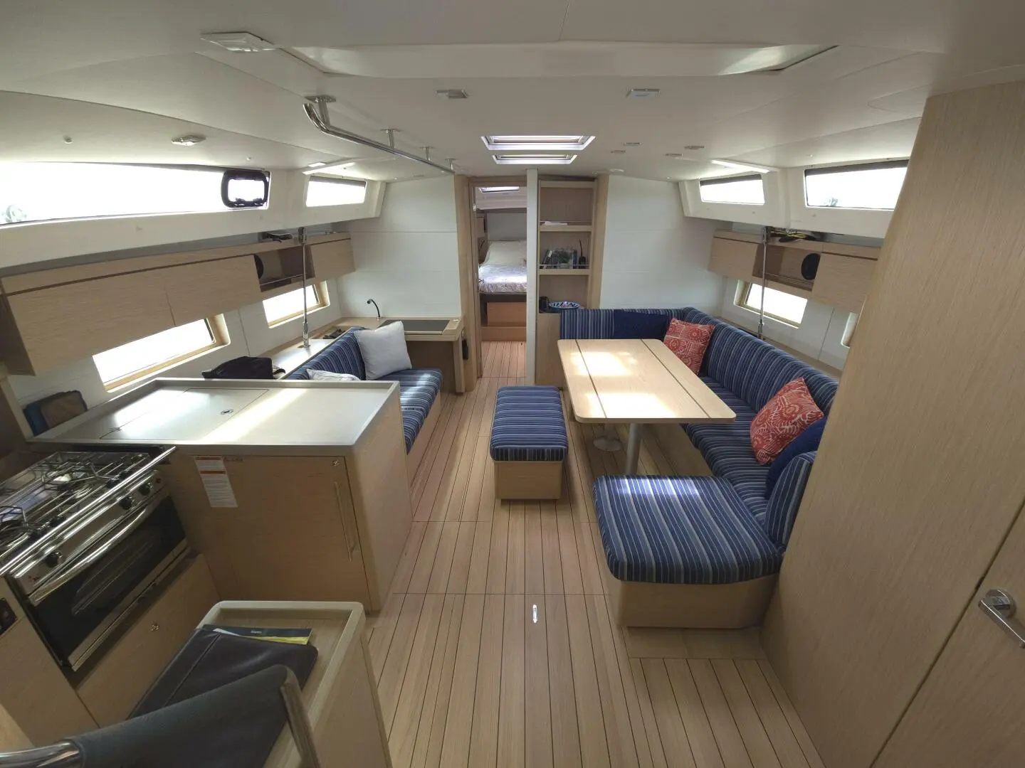 - Cockpit cushions all around including to port and starboard of companionway