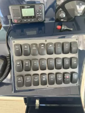 - Garmin touchscreen chartplotter, radar, autopilot, and VHF