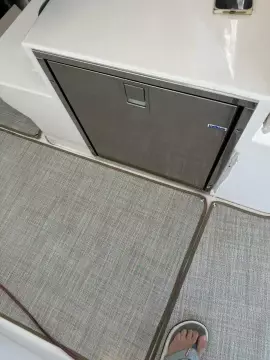 - Spacious cockpit seating (helm, port lounge, aft bench)
