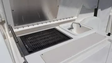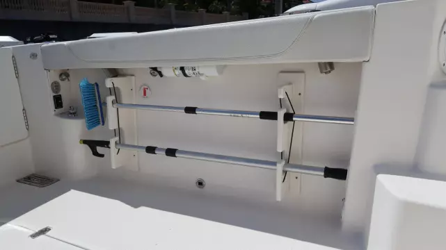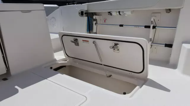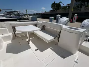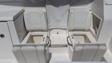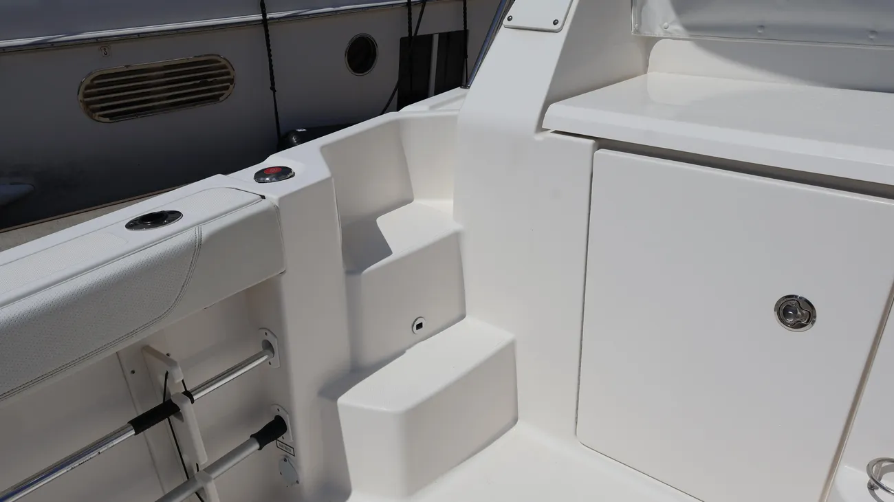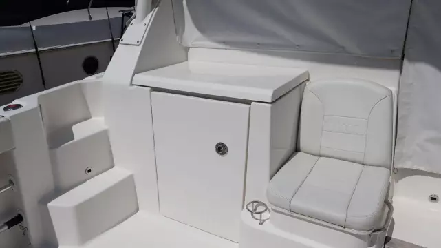 With a 35'11" LOA and 12' beam, the OS 355 boasts a deep-V hull for a dry, stable ride, even in rough offshore conditions. The Yamaha 425 XTOs provide exceptional torque and fuel efficiency while delivering top speeds north of 50 mph. The cockpit and helm layout are designed for both serious anglers and entertaining guests in comfort and style.