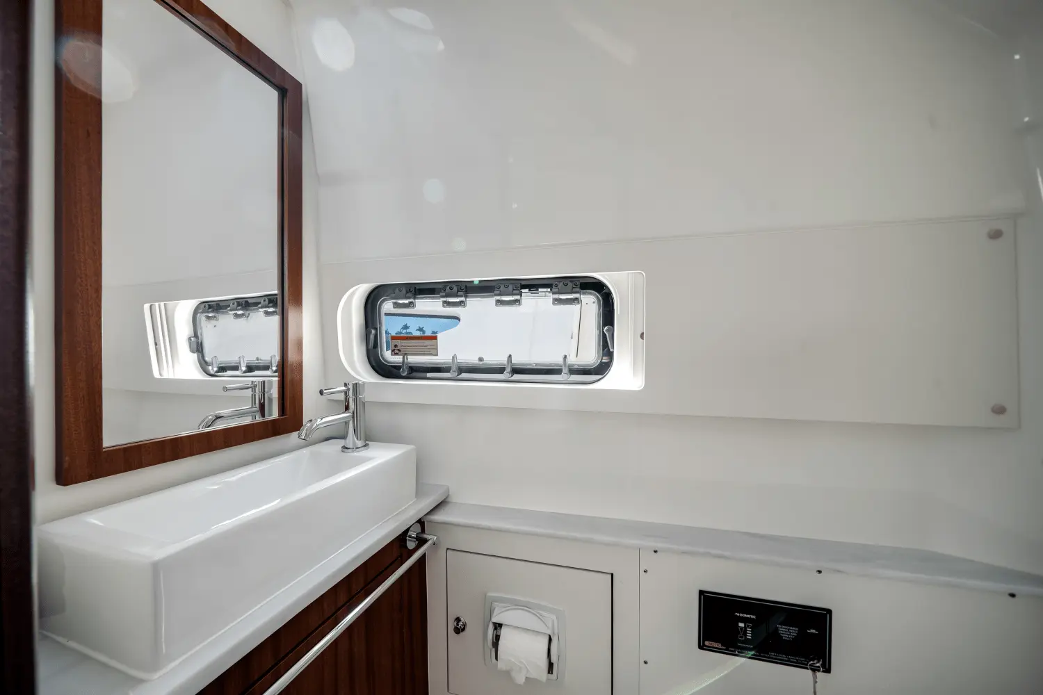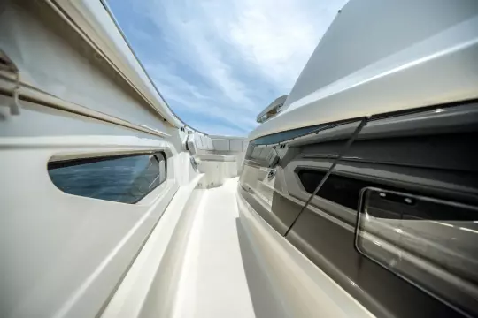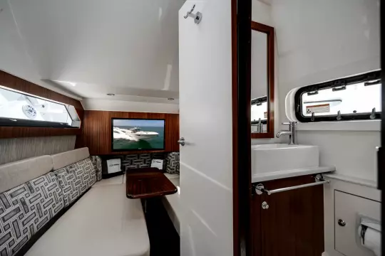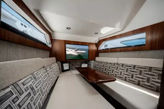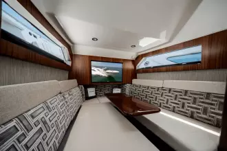 When it’s time to entertain, your crew will have plenty of social zones to choose from. A spacious cabin features plenty