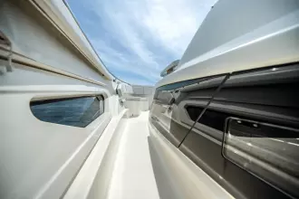 Whether it’s swimming up to the electrohydraulic hull-side beach platform, fishing from the generous cockpit or enjoying the