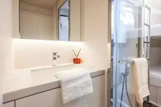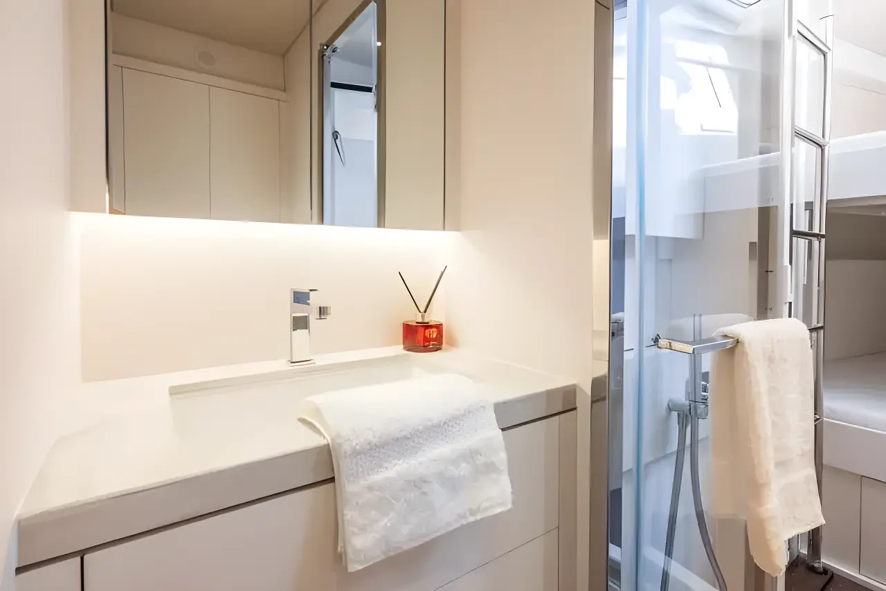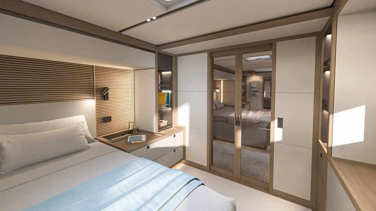 The EIGHTY 2 is a yacht where each detail counts. The owner’s cabin – featuring a king-sized berth and a view of the sea, private terrace, and areas for relaxation – is a true private haven.