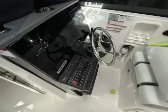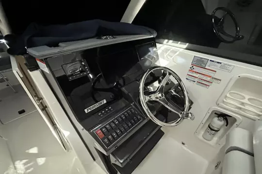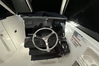 The Pursuit DC 295 dual console boat builds on an award-winning product design that delivers unparalleled style, performance and amenities in the popular dual console category. Paired with dependable Yamaha outboards, the DC 295 dual console boat conveys a message of superior design, engineering and construction synonymous with Pursuit. Integrated hardtop, a crystal–clear tempered windshield, convertible seating arrangements and product specific storage are a few of the highlights in Pursuit’s luxury dual console boat. The forward bow seating is perfect for lounging when the weather is right or you can dip behind the protection of the full windshield and hardtop arrangement to escape the elements. The wide-open layout is built around sport utility, fish, cruise dive and entertain in a luxury dual console that sets the standard for the category. Garmin electronics, Radar, digital throttle and shift, JOYSTICK operation, shore power, anchor windlass, all the bells and whistles await the next owner for their on water adventures.