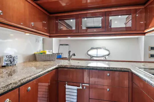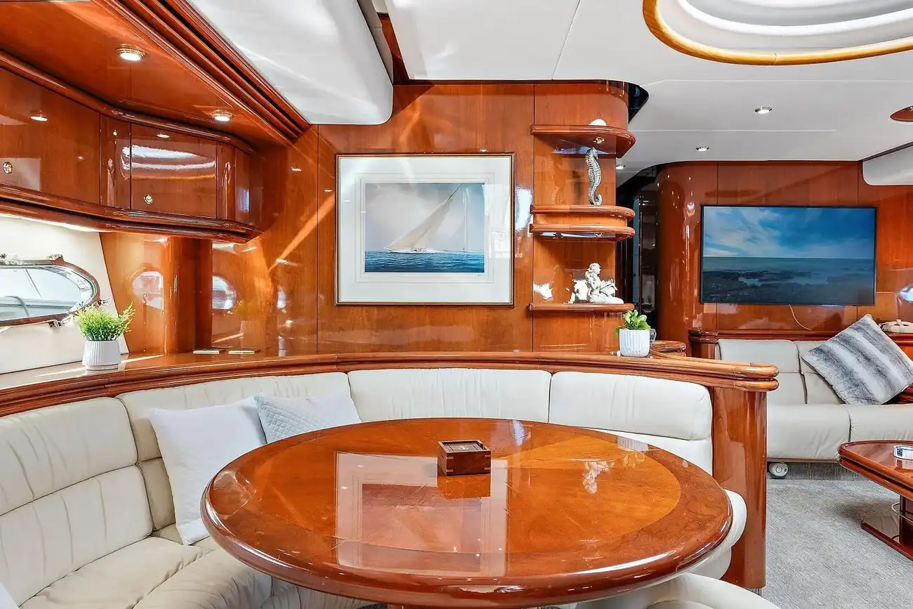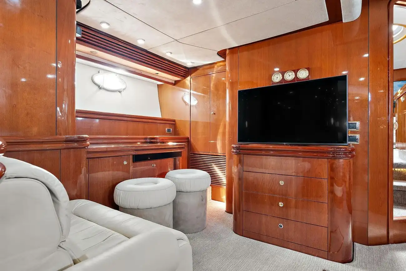 This Predator was engineered to run. Thanks to her triple-screw Arneson surface drive setup, she planes quickly, runs flat at speed, and carves cleanly at high velocity. With hydraulic bow and stern thrusters, she’s surprisingly maneuverable for an 80-footer.