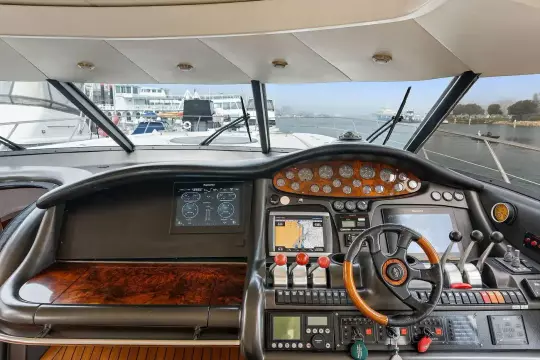 • Sunseeker helm station with radar, autopilot, chartplotter, VHF, and more