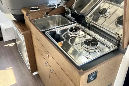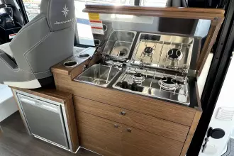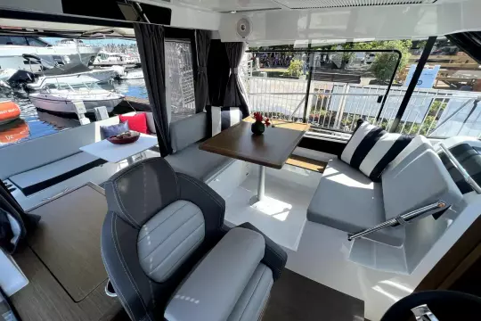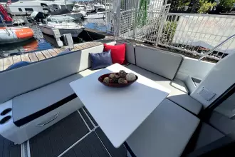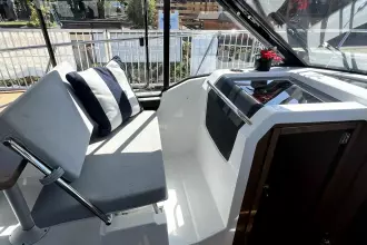 This NC features an opening side gate, a recessed side deck, as well as a very generous storage capacity. The main cabin, with wide windows, is equipped with a head with shower and marine WC. With her clever details, the NC 895 makes unforgettable cruises possible, perfect for sharing unique moments together as a family.