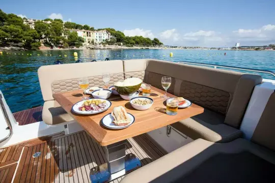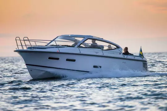 The Nimbus 305 Drophead is a new kind of day cruiser suitable for comfortable weekend and day trips. The boat is built on the new Smart Speed concept, to create maximum comfort for all aboard at all speeds. Design and function are optimized for social activities and entertaining aboard.