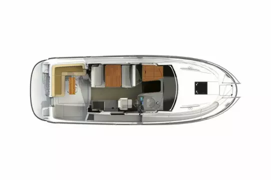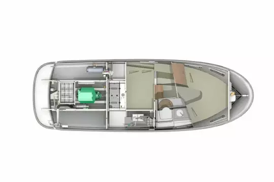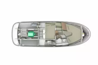 The 305 Drophead virtually breathes Scandinavian design, and the materials have been selected with utmost care. The interior of the boat exudes sheer quality and feels spacious and airy. The boat is fitted with integrated ventilation and opening port lights for generous light intake. Bulkhead covers in light-colored materials reduce noise. Mahogany fittings create a beautiful contrast with the lacquered surfaces and provide a warm atmosphere. Lighting is cleverly designed for both comfort and efficiency. The boat has two very comfortable cabins: the “owners cabin” and a side cabin, sharing the head and shower.