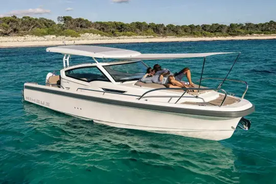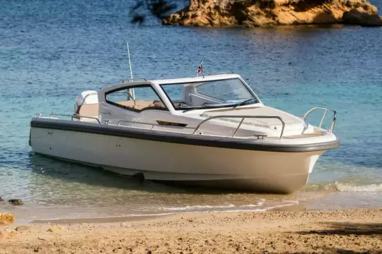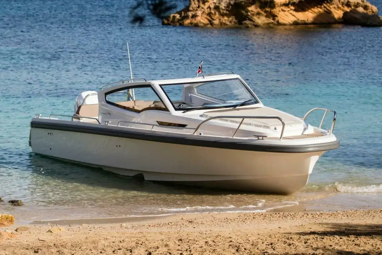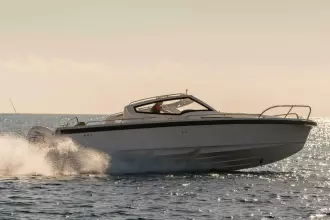Among the design elements that will be easily recognized are the interior layout, which has many similarities to the 26 Epoca and 32 Ballista, the broad fore deck for extra safety and ease of boarding and disembarking, a feature of the Max II, the design of the side windows from the 22 Spectra, the design and function of the window frame with integrated canvas hood cover from the 305 Drophead, the air-lubricated stepped hull introduced to the Nimbus family with the R-series in 2000, and much more.
