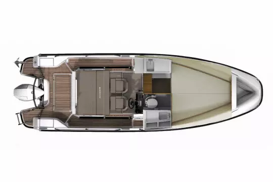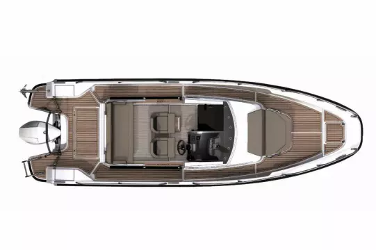 The aft deck has space enough for up to 4–5 people to sit: On the benches, on the aft sides, and on the foldable aft sofa. Thanks to the foldable aft sofa, the aft deck can be purposefully adapted as needed: seating for socializing, loading place for luggage or space for activities like fishing or swimming.
