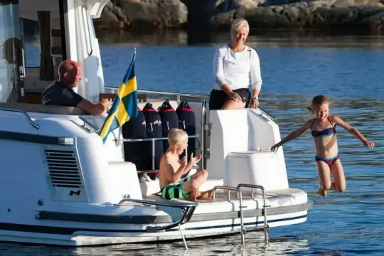 The most important attribute on the 305 is the hull, which has been developed and optimized for speeds from 0 to 22 knots. The hull is designed to suit smaller engines such as the Volvo Penta D3 and the fully-electric Torqeedo, and built to run comfortably irrespective of speed. The hydro-dynamic shape of the hull means that the boat has no planing threshold at all.