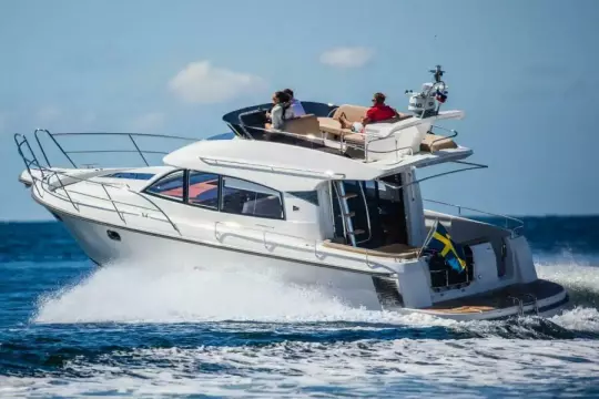 All functions on the flybridge have been designed to allow the boat to pass beneath bridges after a few simple adjustments. Thanks to the “sidewalk” deck layout, walking space is maximized on the starboard side, making it very easy to get on and off the boat and to spend time on deck, while allowing generous space in the cockpit and cabin. The Nimbus Coupé series has been built since 1969 and more than four thousand of these boats have been sold worldwide. The 405 Flybridge is built in Mariestad, Sweden at the Nimbus boatyard.