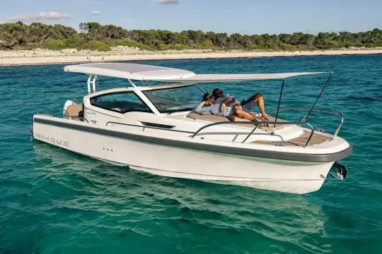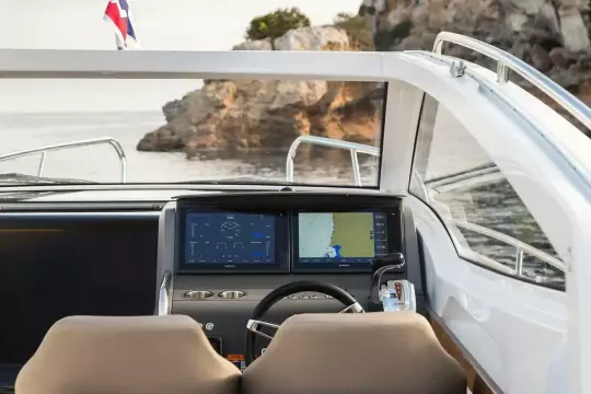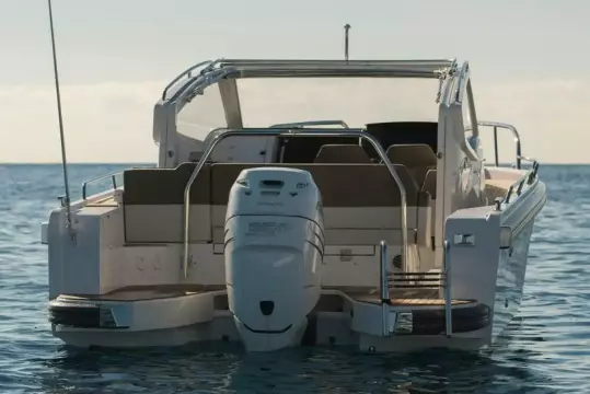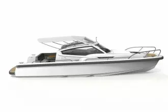 Among the design elements that will be easily recognized are the interior layout, which has many similarities to the 26 Epoca and 32 Ballista, the broad fore deck for extra safety and ease of boarding and disembarking, a feature of the Max II, the design of the side windows from the 22 Spectra, the design and function of the window frame with integrated canvas hood cover from the 305 Drophead, the air-lubricated stepped hull introduced to the Nimbus family with the R-series in 2000, and much more.