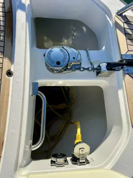 The interior of the 365 offers genuine quality with a beautiful dark mahogany finish, creating a delightful contrast to the light varnished surfaces and adding a feeling of warmth. The boat has two cabins – the master cabin and guest cabin – with a common toilet. One key innovation is that both cabins are equipped with high cupboards/wardrobes for increased storage. The bulkheads in each cabin are fabric-covered in light sound-absorbent material. LED lighting throughout the boat is well appointed and creates a cozy interior. Integrated ventilation makes a considerable difference to air circulation and quality.