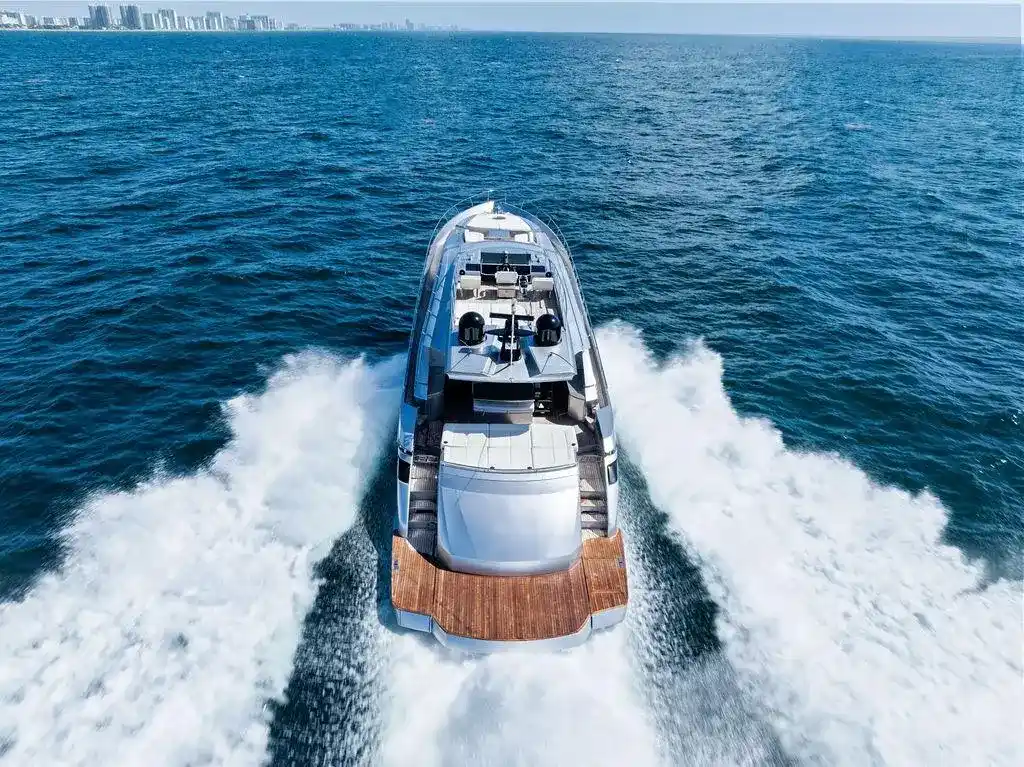 PHOENIX RISING is a remarkable blend of speed, luxury, and Italian design excellence. Powered by twin MTU 2638 hp engines with Top System Drives, she cruises effortlessly in the mid-40 knot range and can reach top speeds exceeding 50 knots. At 82 feet, her sleek profile, designed by Fulvio de Simoni, turns heads in any harbor. The refined interiors, finished in oak, leather, and Poltrona Frau furnishings, exude sophistication. With a versatile three-cabin layout, an expansive salon, and a flybridge for outdoor enjoyment, PHOENIX RISING delivers the excitement of a sport yacht combined with the comfort of a luxury cruiser.