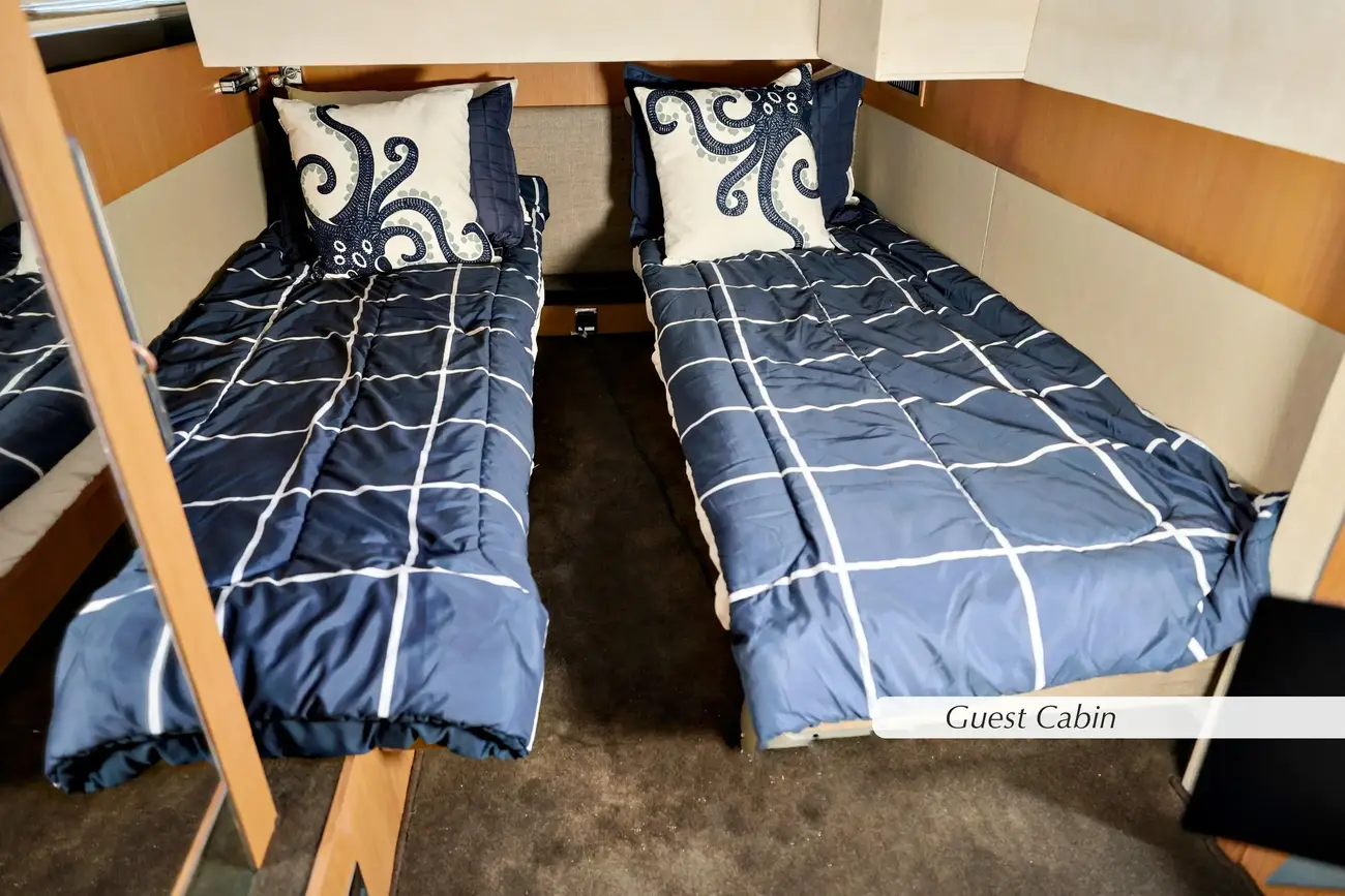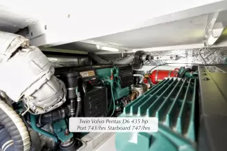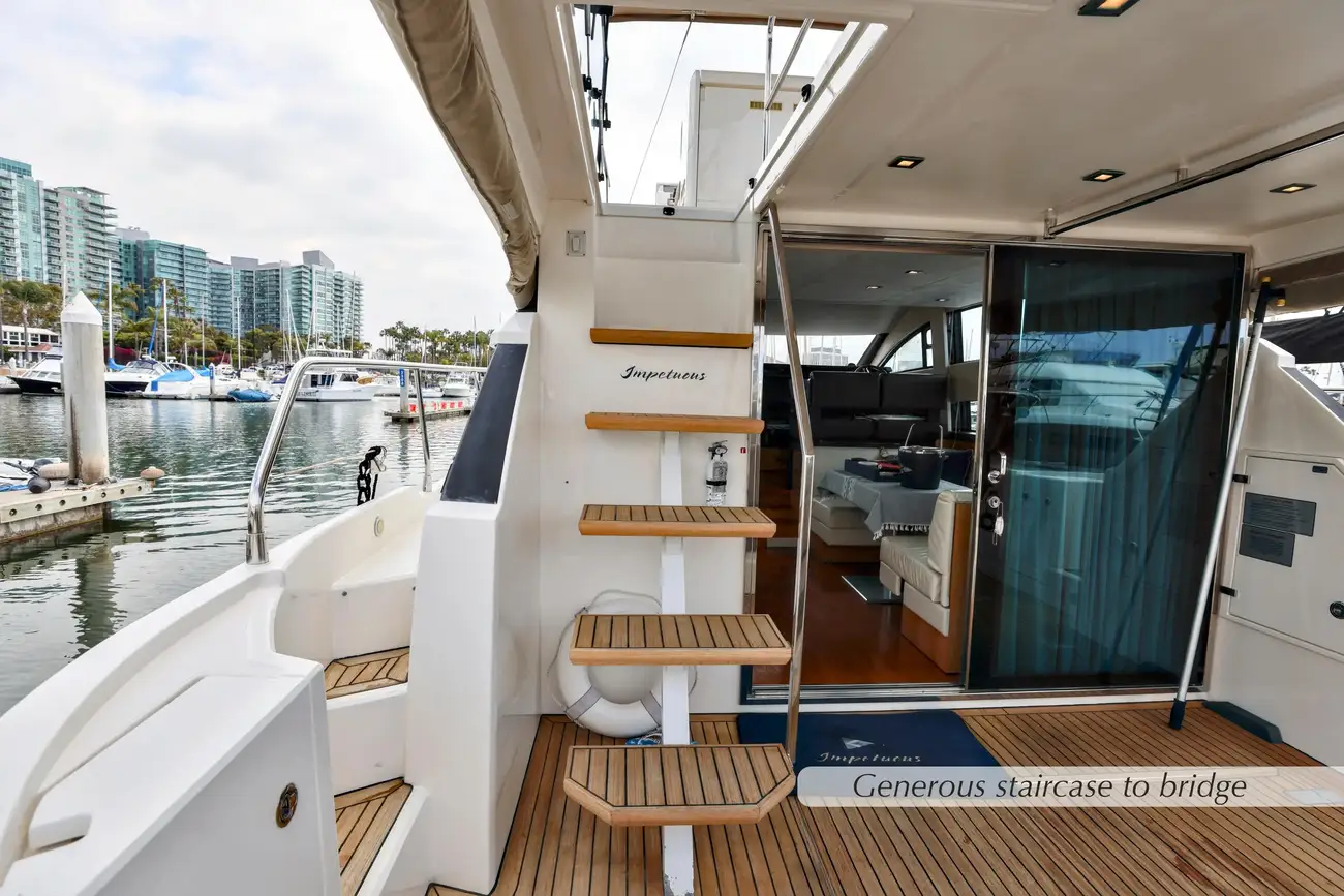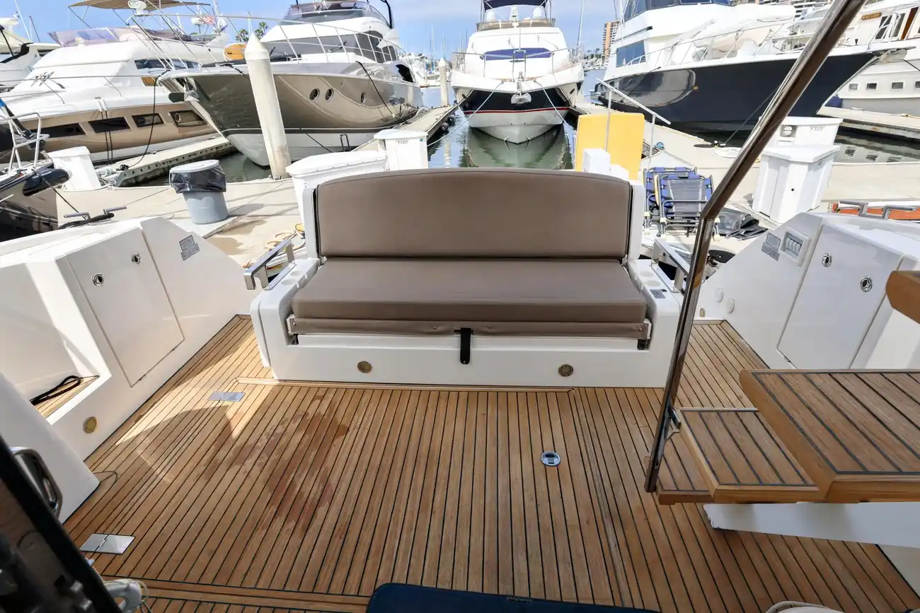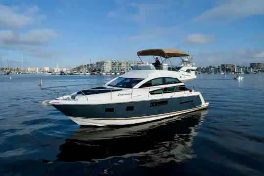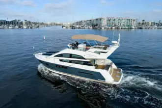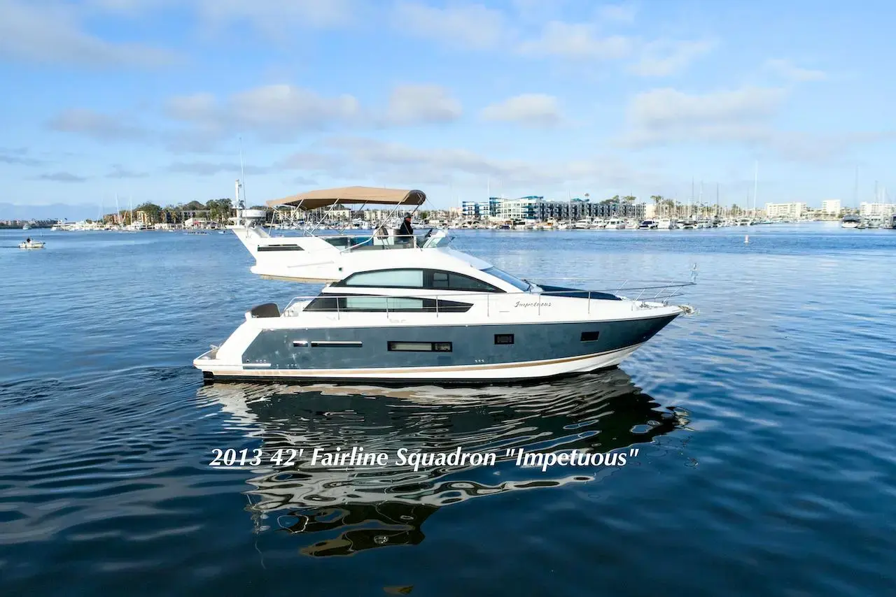 The Fairline Squadron 42 brings together luxury, seaworthiness, and smart design in a package that feels right at home in Southern California waters. At 44 feet overall, she delivers the space and comfort of a larger motoryacht, paired with the handling and performance of twin Volvo Penta diesels and Bow Thruster for easy docking.