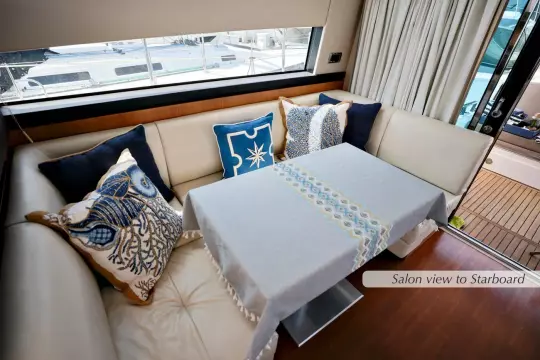 - Bright and open salon thoughtfully connected to the aft cockpit for seamless indoor-outdoor living.