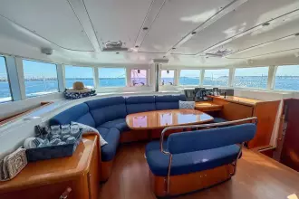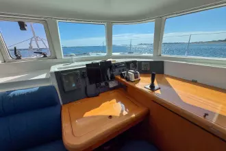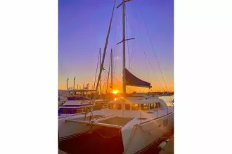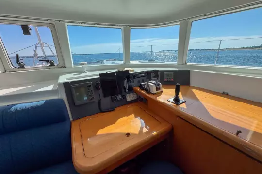 This well-maintained Lagoon 440, Liberty, has been under the care of the same owners running day charters in Maine and Key West for the past half decade. The vessel has its import duty/tax paid in the US and also has a MARAD waiver/Coastwise trade endorsement making it ready for cruising and chartering alike. Liberty is a four-cabin / four-head layout and has the signature flybridge helm that the 440 pioneered with seating for six. The cockpit has ample space for entertainment with seating for ten and the salon is spacious and comfortable. There is a salon autohelm, throttles, and navigation tablets for foul-weather navigation. The vessel has a custom arch with 920W of solar and complimentary Victron chargers feeding the 840ah of lithium batteries making it ready for off-grid living. The sail locker is well stocked with an asymmetrical spinnaker and bowsprit to accompany the main and jib. This vessel is ready to take on new owners and its next bluewater adventure! Liberty is currently located in Saco, Maine and is available for in-person or virtual tours so inquire today!