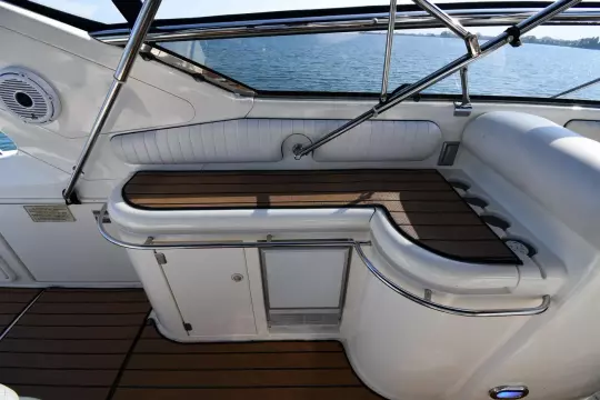 Freshwater / Great Lakes boat since new this vessel features Twin Detroit Diesel 8V92 DDEC 760-hp Diesel Engine's. Notable features include but are not limited to the following: Air-Conditioning & Heat (3-Units) - Note Forward Unit NEW, (2) Head's (Electric-Flush) w/Vanity/Sink/Stall-Shower, 3-Stateroom Layout (see photos), Windlass Anchor (NEW), NEW Generator (130 hrs) w/NEMA 2000, Updated Garmin NAV-System w/Dual 7612 XSV Display's w/Garmin HD-Radar/GPS/Chartplotter, Robertson Autopilot, Premium Fusion Sound System (Note 3-AMP's, JL-Audio Speakers, JL-Audio Sub-Woofer, JL-Audio Tower Speakers on Radar Arch, Forward Bow Sun-Pad (NEW) w/Cover, Snap-in Snap-out Cockpit Carpeting (NEW), Cockpit Wet Bar w/Sink/Ice-Maker/Freezer, and MUCH more!
