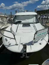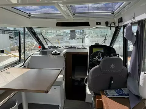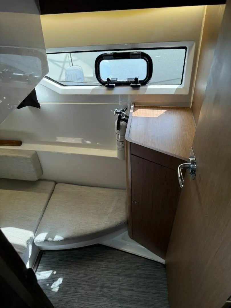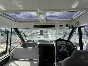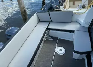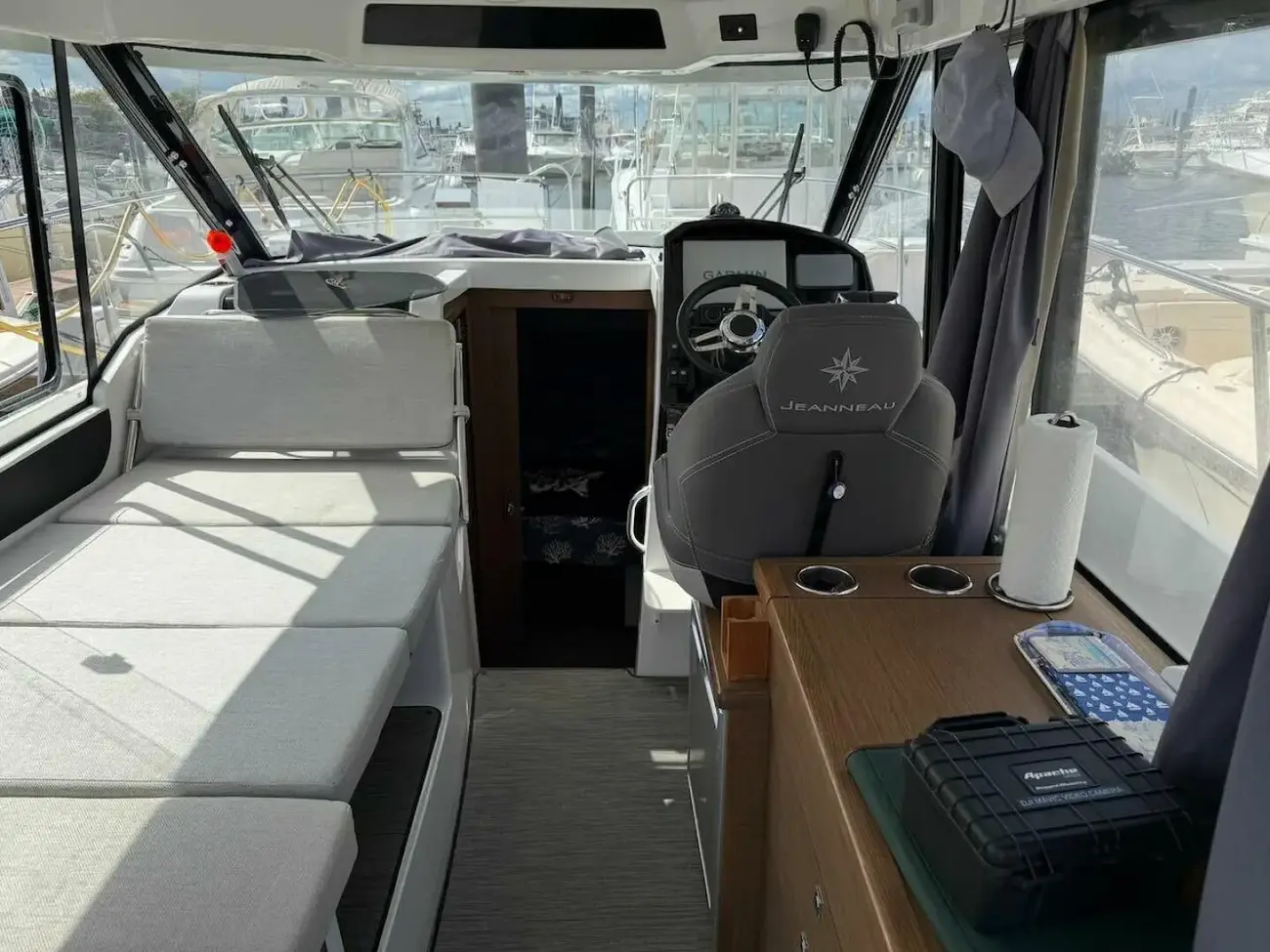 The 2021 Jeanneau NC 895 is a versatile and stylish express cruiser with a comfortable and bright interior. With its very flexible layout and ease of handling, this boat is suitable for families and couples for everything from day trips to weekend getaways. PISCES features a spacious cockpit, a functional galley, and enclosed head and accommodations for up to six across two cabins and the main salon. With twin Yamaha 200hp outboard engines with low hours, a full glass enclosure for excellent visibility, and a modular cockpit with versatile seating for socializing, dining, or fishing, PISCES is a loaded boat featuring: