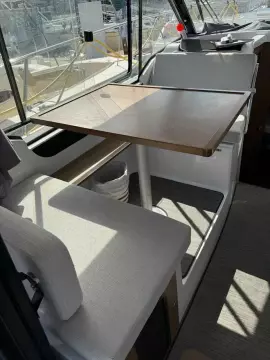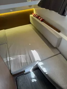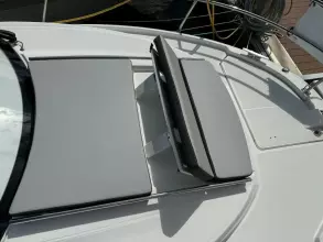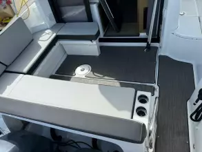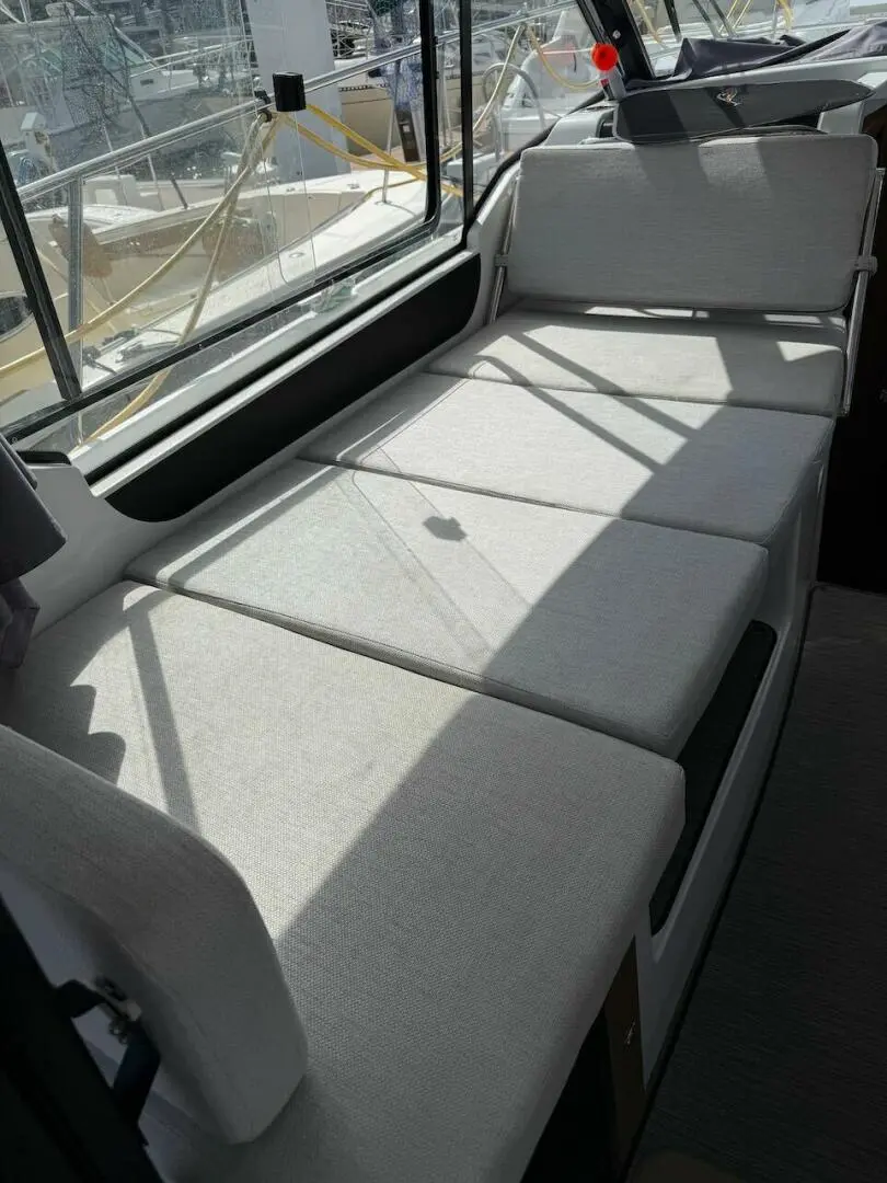 - Cockpit Option 2: U-shaped cockpit with lateral backrests and table, which transforms into sundeck