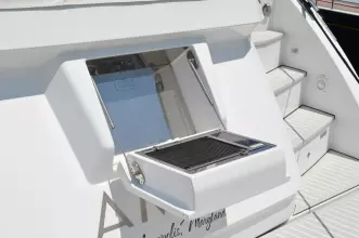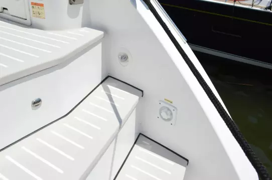 - 450 l (118.8 US.liq.gal.) plastic tank under the bow tray, under the owner's cabin floor, aft side