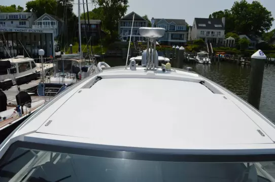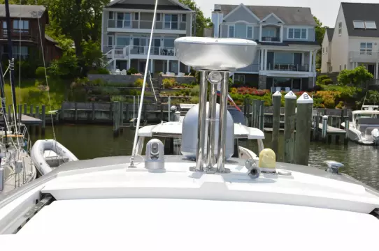 - Painted KVH dome, radar, mast, DPS antenna, and searchlight