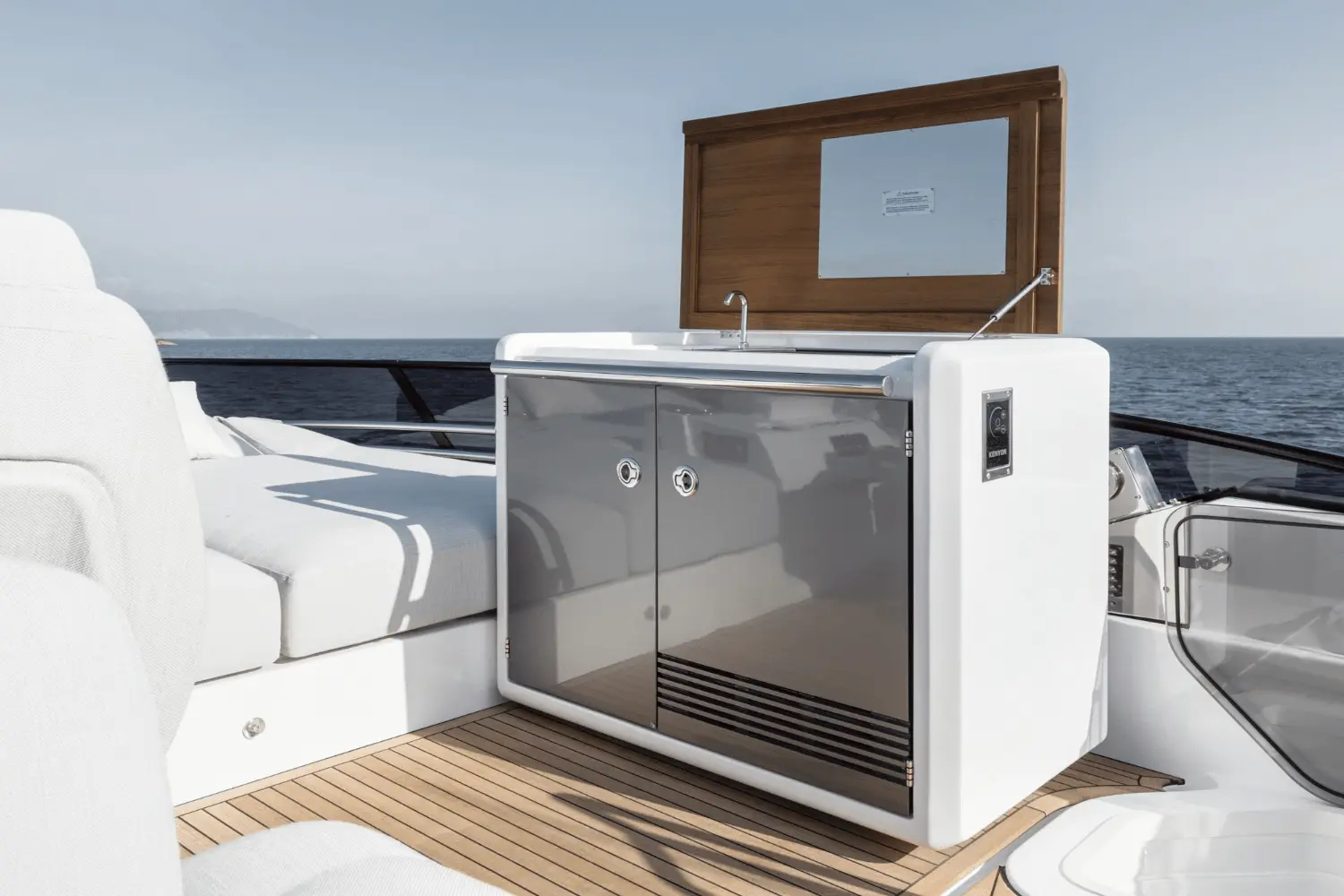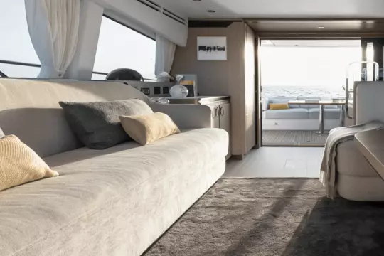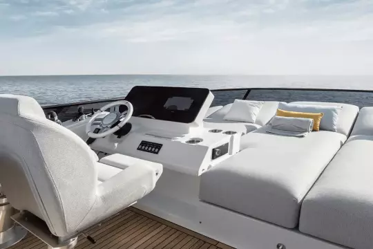 Every detail of the Azimut Fly 53 reflects unparalleled craftsmanship, from its sleek exterior to its sumptuous interiors. Enjoy spacious living areas adorned with high-end finishes, creating an inviting atmosphere for both relaxation and entertainment.