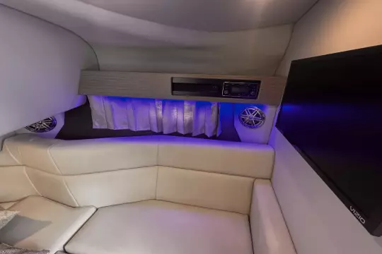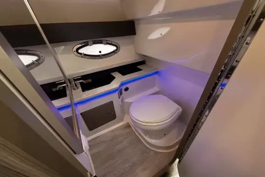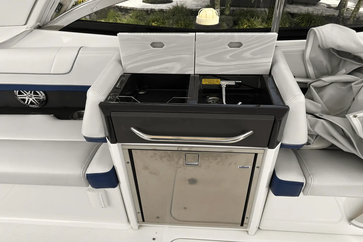 open bow layout of a performance bowrider with the full cabin comfort of a cruiser.