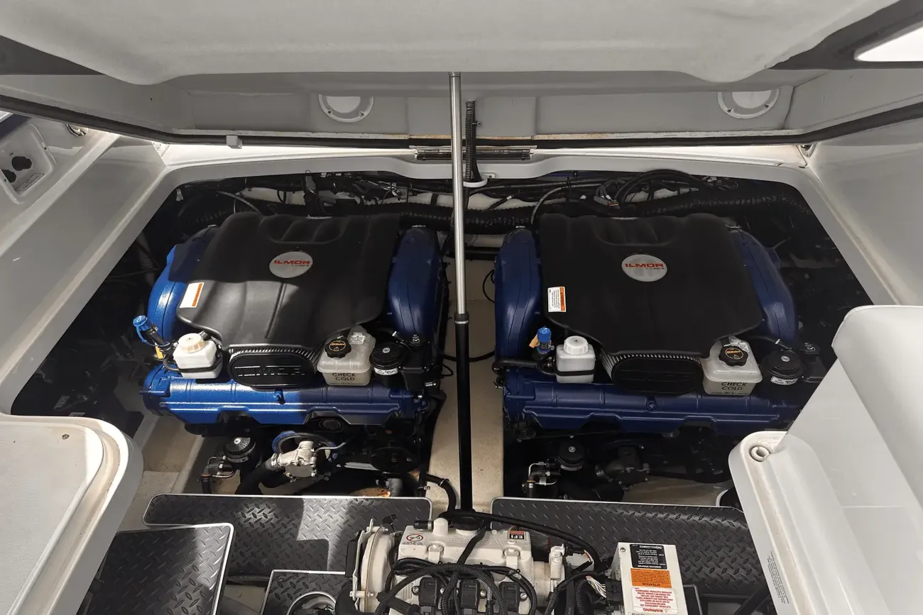 Powered by twin Ilmor 6.2L 430hp stern drive engines with Yanmar outdrives,