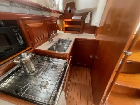 The Beneteau 423 is celebrated for its balance of sailing performance and luxurious accommodations. Whether you're chasing summer breezes off Cape Cod or island-hopping through the Exumas, this boat delivers a smooth, responsive ride with excellent handling under sail. The powerful rig and deep keel provide stability and speed, while the spacious cockpit and wide decks make for safe and comfortable cruising.