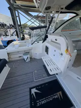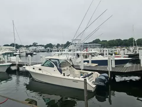 Just in is this one owner rack stored Pursuit. This vessel is powered by a pair of Yamaha F300's aided by DEC controls and power steering. Loaded boat with everything to make from family weekend cruises to canyon trips a breeze.
