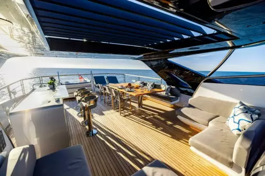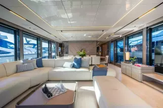 A striking Owner Stateroom forward with a private bow terrace, sunbathing hideaways, a breathtaking single-level exterior deck from flybridge to foredeck, a beautifully proportioned open-plan interior and generous ‘Beach Club’, just a few of her magnificent features.