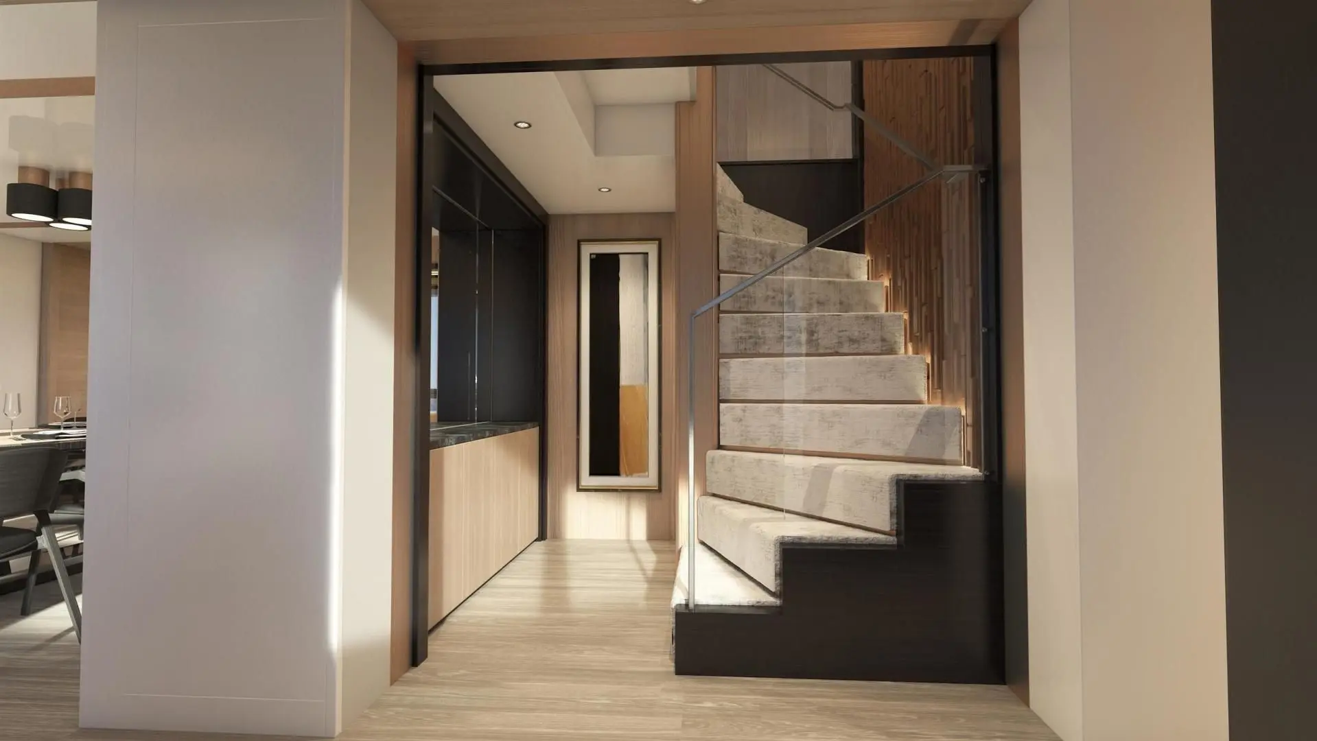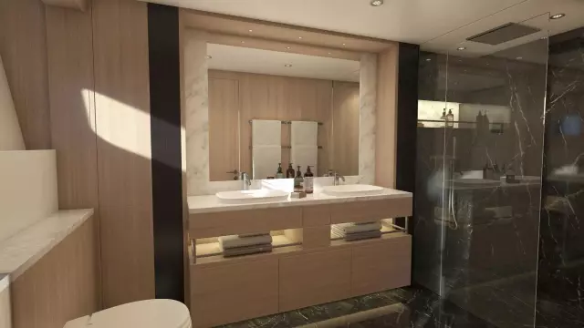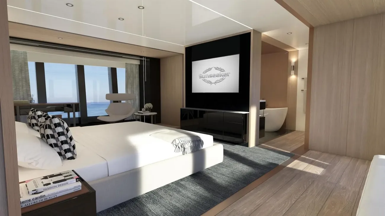 The first impression of the Ocean 460 is one of light, space, and meticulous detail, enhanced by premium technology and a wide array of décor and lighting options to match any mood. The yacht's styling, an evolution of Sunseeker's signature sophistication, includes luxurious touches, seamless room transitions, and the finest woods, leathers, and fabrics, offering each owner a truly bespoke experience.