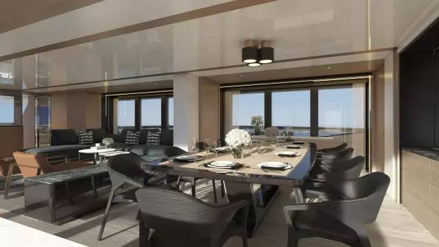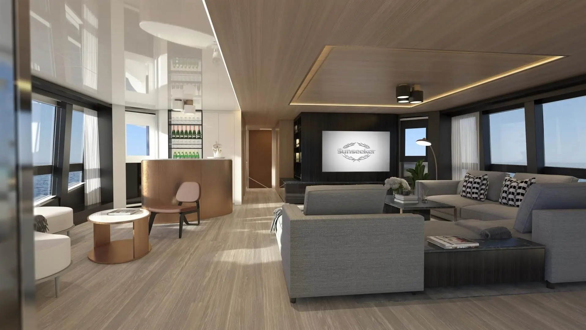 The Ocean 460 stands out by highlighting its gross tonnage in its name, reflecting its expansive interior volume, rather than its length. This innovative naming convention by Sunseeker emphasizes the yacht's unique feature: a substantial increase in interior space within a 42-meter frame, compared to traditional yachts of similar size.