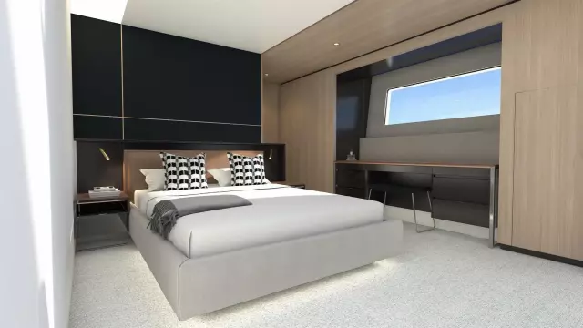 Powered by MAN 12V engines, the Ocean 460 achieves a top speed of 21 knots and offers a range of 3,200 nautical miles at a cruising speed of approximately 12 knots. Optional hybrid systems are also available, providing benefits such as extended range, silent running, and the ability to power onboard systems while at anchor.