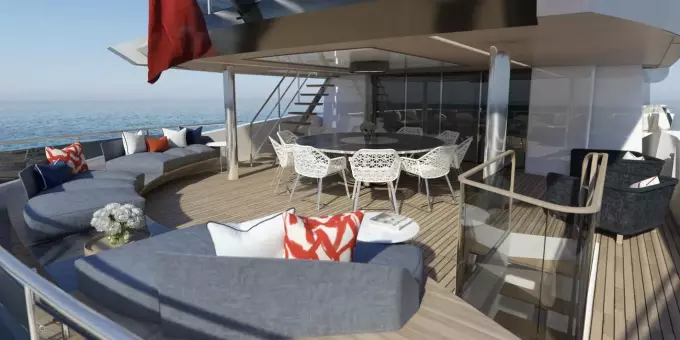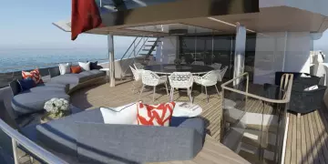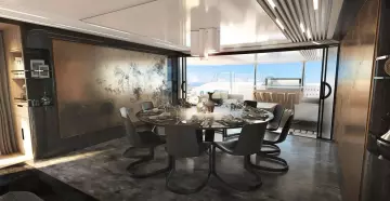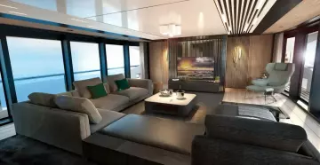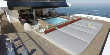 Our acclaimed ‘Bespoke’ service delivers unparalleled interior customization tailored to your preferences. Emphasizing space and versatility, it maximizes volume and introduces impressive features to elevate your onboard experience. Onboard the 50m Ocean, you will enjoy amenities typically found on much larger vessels, such as a plunge pool on the main deck and an extraordinary Beach Club with drop-down bulwarks and a transom, creating a stunning area for relaxation or entertaining by the water. The standard guest arrangement accommodates ten guests across five cabins, with the option to host up to twelve guests depending on the chosen layout.