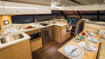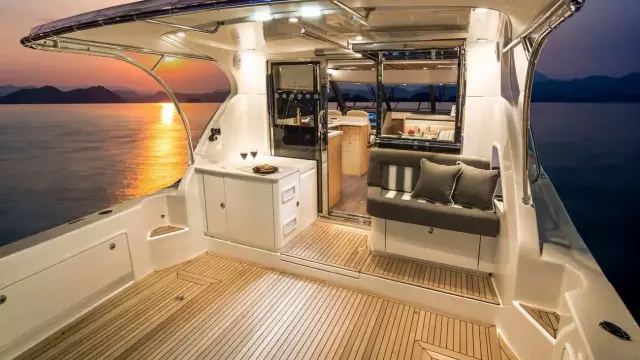 The Riviera 445 SUV is a new class of boat. One that allows a family to fish in a tournament during the afternoon, entertain a crowd that evening, and then take everyone cruising the next day. Based on our proven hull design but with an added angle of convenience, the 445 SUV is the perfect choice for the modern boater.