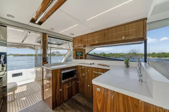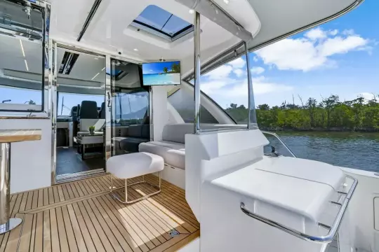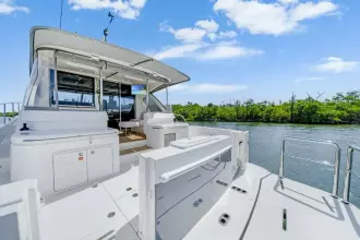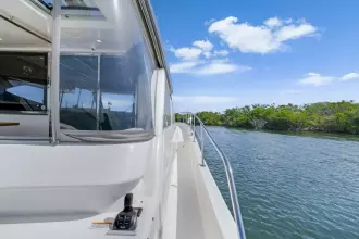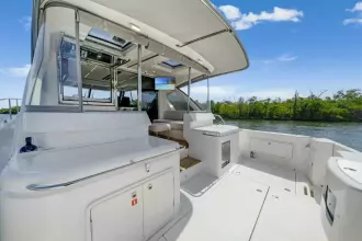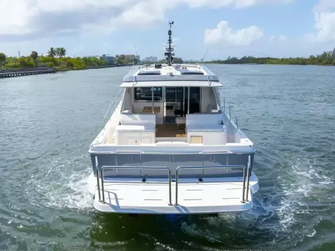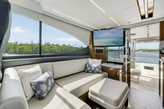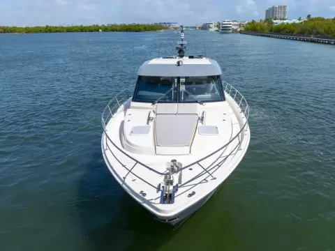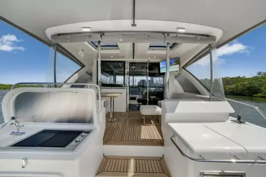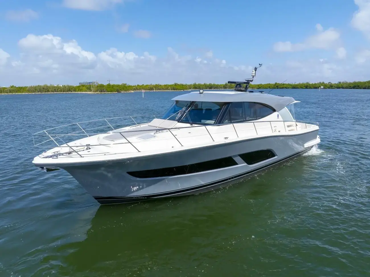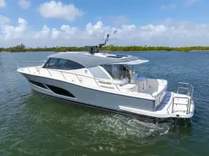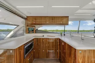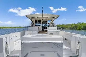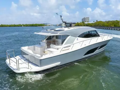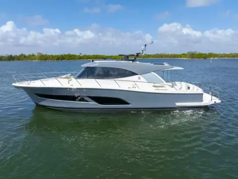 World-famous Riviera build quality ensures spirited performance and retained resale value. This motor yacht is luxurious and well-appointed. From bow to boarding platform, enjoy Riviera's attention to detail, handcrafted luxury, and advanced operational technology. The 505 SUV enhances refined living below decks with a full beam master stateroom, private ensuite, and walk-in robe, along with two guest staterooms and a shared bathroom. It features the Volvo Penta Glass Cockpit navigation system and the smooth, economical performance of twin Volvo Penta IPS turbo diesels with joystick control.