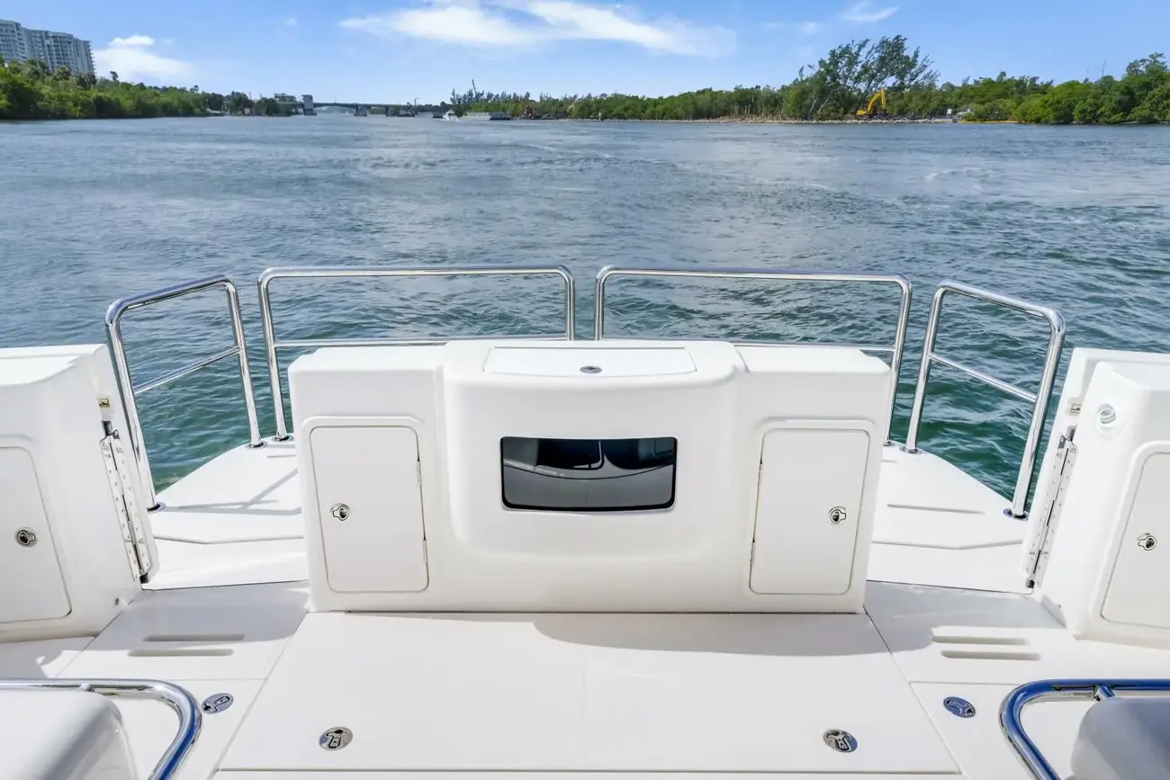 - Swim Platform Rail Enclosure - 4 x removable U shaped stainless steel rails including mid rail and additional sockets to stow at transom while not in use (1 x port, 1 x stbd, 2 x aft)