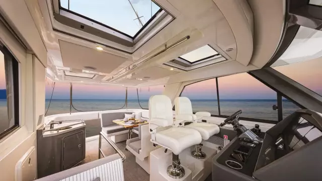 Designed by 4D Designs in collaboration with the Riviera design team and built in-house to our exacting standards on Australia’s Gold Coast, the new 50 Sports Motor Yacht is a remarkable package. Offering all of the essentials you’d expect to find on a much larger yacht, including foredeck relaxation zone, walk around side decks, all weather al fresco mezzanine entertaining, spacious luxurious saloon with internal staircase to an enclosed air-conditioned flybridge and state-of-the-art helm. The generous three cabin/two-bathroom accommodation deck is bathed in natural light from tinted glass hull windows and features a magnificent full-beam master stateroom.