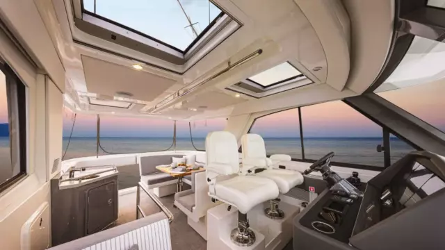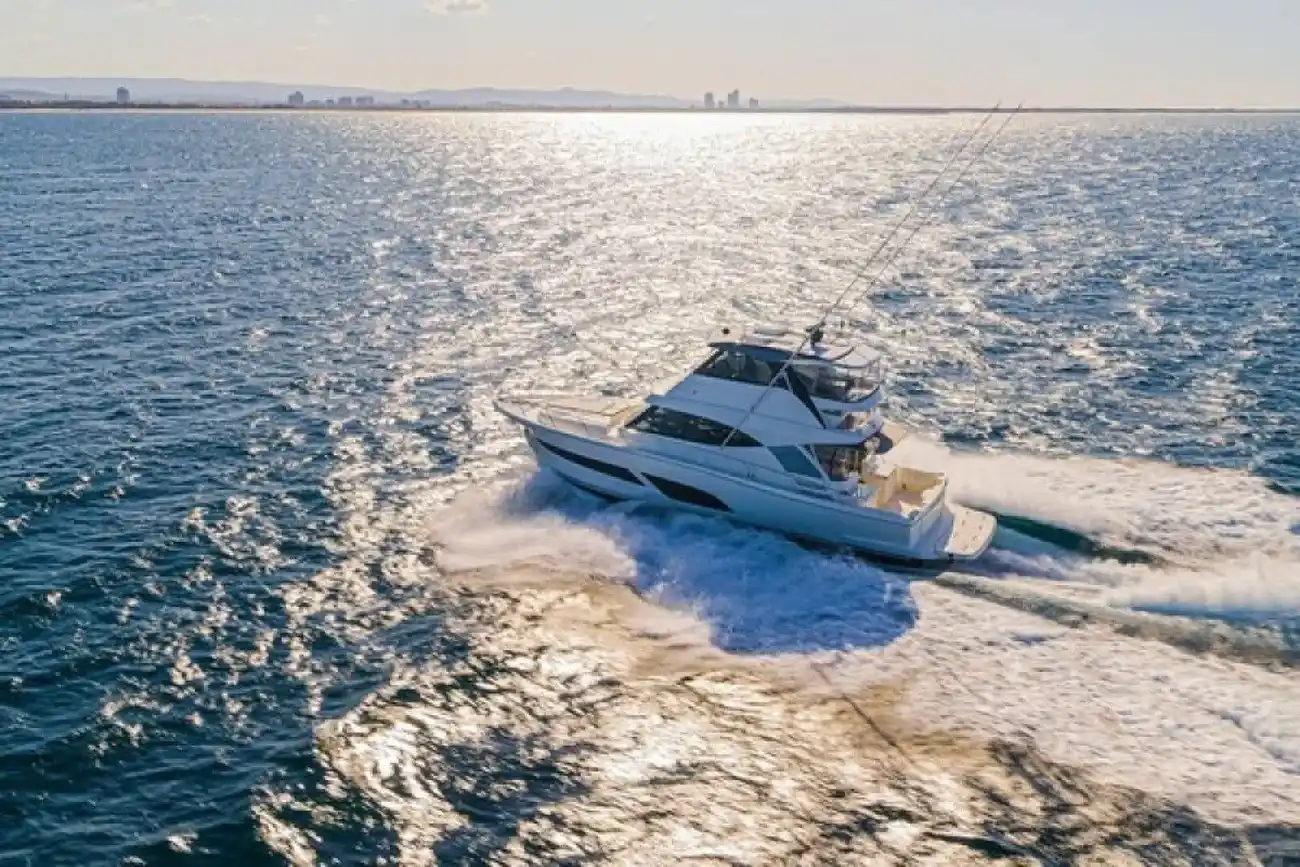 Designed by 4D Designs in collaboration with the Riviera design team and built in-house to our exacting standards on Australia’s Gold Coast, the new 50 Sports Motor Yacht is a remarkable package. Offering all of the essentials you’d expect to find on a much larger yacht, including foredeck relaxation zone, walk-around side decks, all-weather alfresco mezzanine entertaining, spacious luxurious saloon with internal staircase to an enclosed air-conditioned flybridge and state-of-the-art helm. The generous three cabin/two-bathroom accommodation deck is bathed in natural light from tinted glass hull windows and features a magnificent full-beam master stateroom.