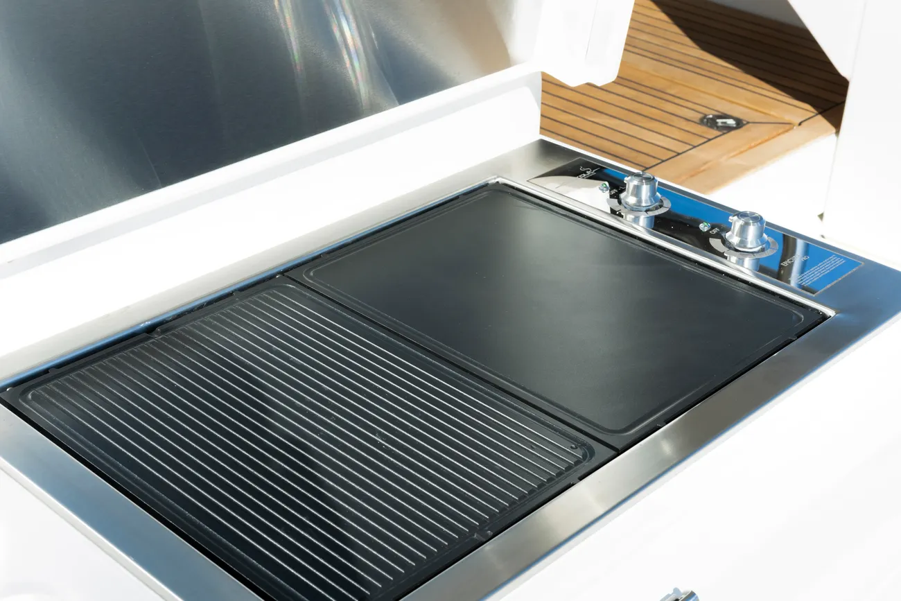 • Hydraulic operation for GRP platform (up/down 350kg max) with íxed hob section, including reinforcement of transom (boat trim & performance will be aìected)