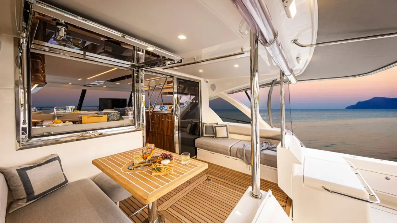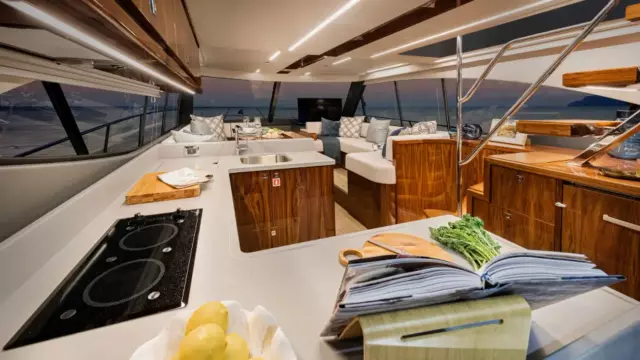 Engineering excellence matches her very sporty looks with real sports performance. The 50 SMY is available with a choice of two highly efficient power and drive options both with joystick controls – twin diesel Volvo Penta IPS950 or twin diesel shaft-drive MAN i6-800 engines. Both power packages deliver a smooth, quiet and efficient ride.