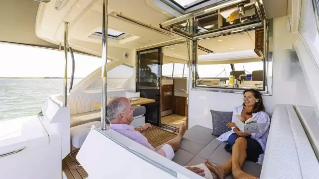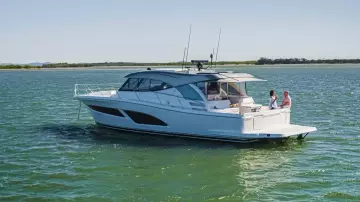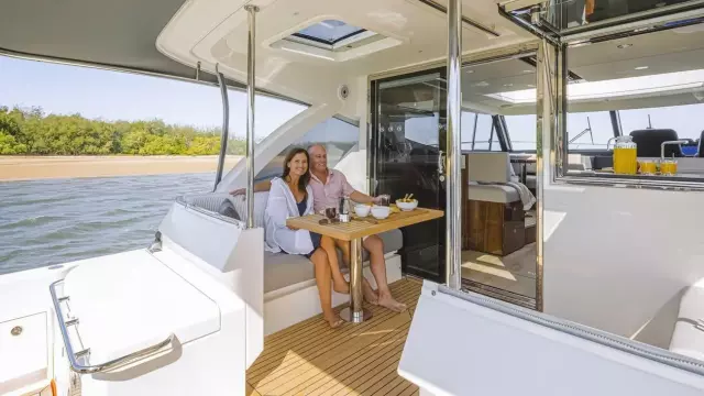 Our SUV motor yachts are truly unique. Single level luxury entertainers with heritage seakeeping capabilities. Brilliant from the keel up, the Riviera 465 SUV has the liveability of a much larger vessel. Flowing out from the saloon, enjoy the comfort, style and ambiance of an alfresco deck. Accommodation is equally impressive with three magnificent staterooms and two bathrooms. And the generous open cockpit is always ready for water-sports action. From bow to boarding platform, you’ll relish the Riviera attention to detail, handcrafted luxury and easy-to-use technology that makes boating even more enjoyable.