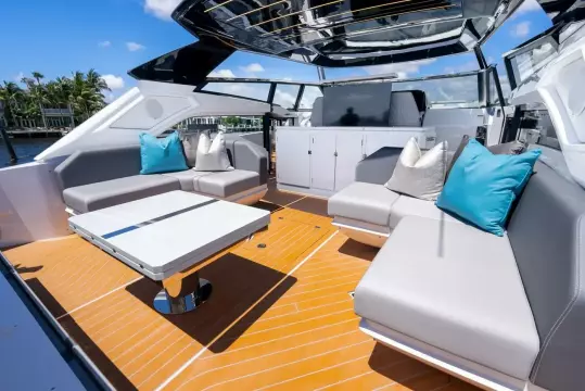 - Cockpit protective covers for the console, helm seats, Aft cockpit seating and table